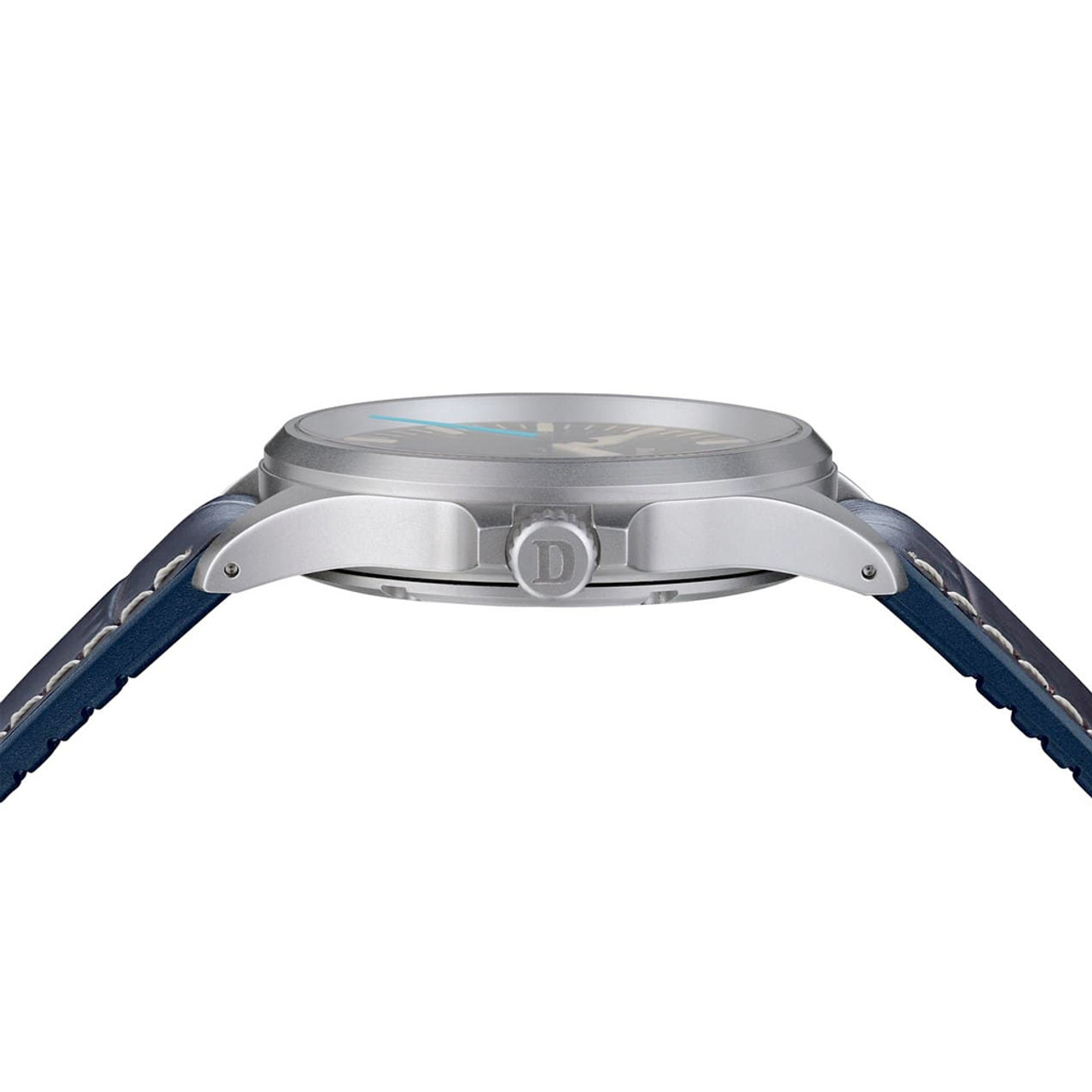 The 39mm diameter case is made from surfaced hardened, submarine steel that is bead blasted to produce a non-reflective matte finish. Overall height is 9.95mm. Lug width is 20mm. Weight without strap is 57 grams. The crown screws-down via the “DAMASKO System” to achieve a water resistance rating of 20 bar or 200 meters. A rubber "max sport" strap secures the DK20 to your wrist.