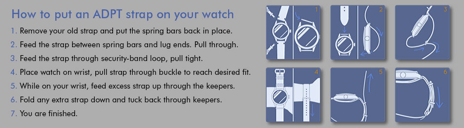 Denim (blue) Color Nylon with 316L grade stainless steel buckle and keepers. The ADPT Strap is based on a military design that features a security-band underneath, ensuring that your watch stays on should a spring bar fail. Made in America.