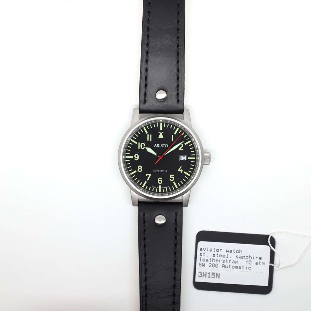 Aristo 38.5mm Swiss Automatic Aviator Watch with Sapphire Crystal #3H15N