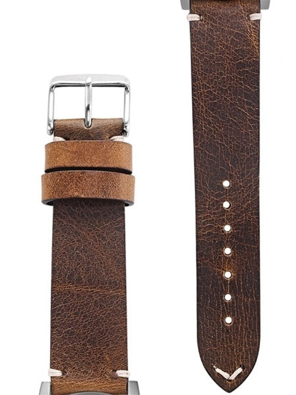 - Band:Textured brown leather, buckle closure. 20mm.