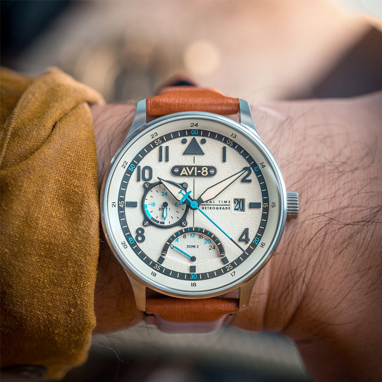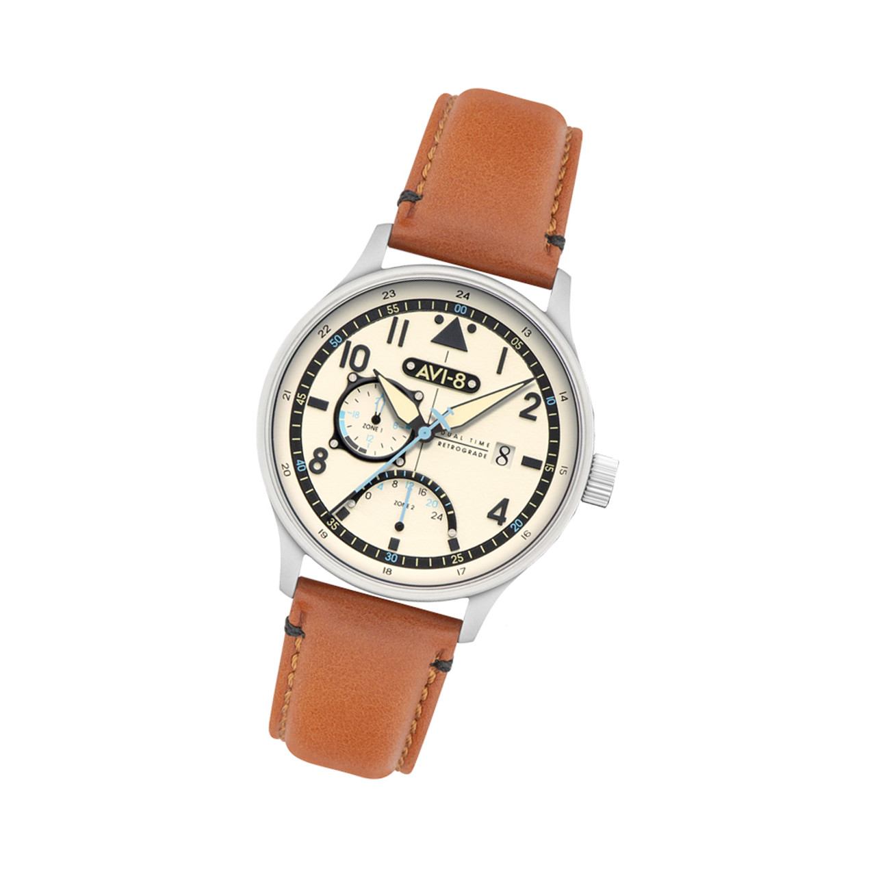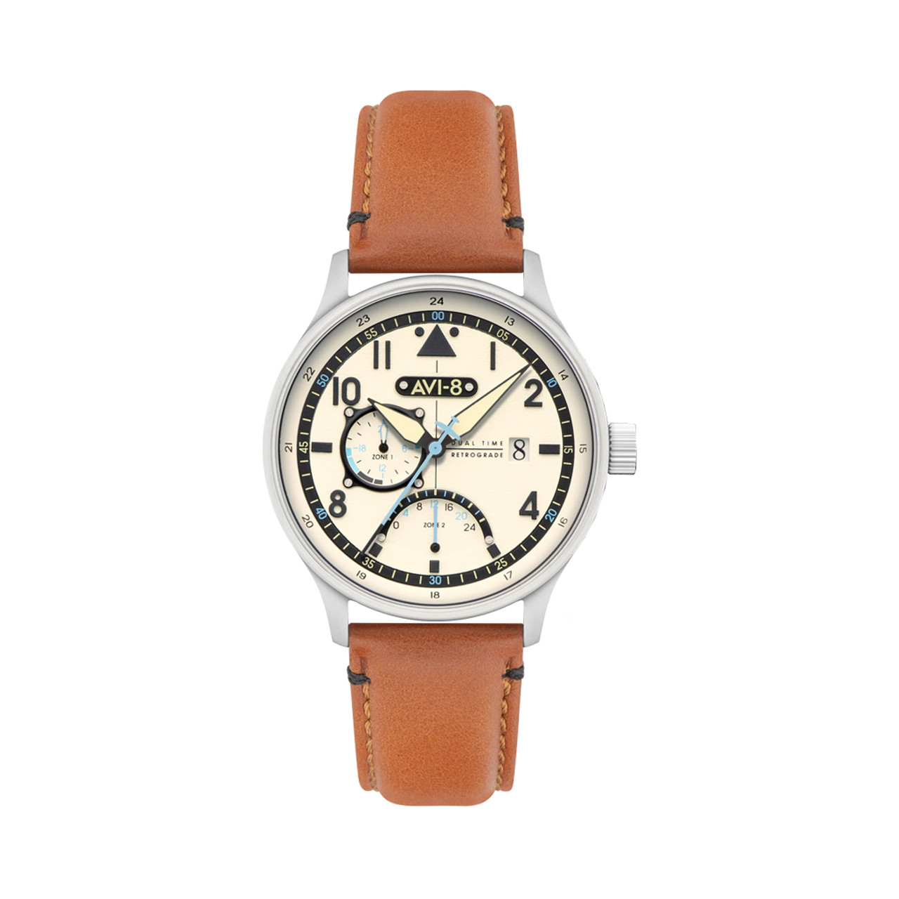 AVI-8 McKellar Dual Time Watch with Ivory Dial #AV-4101-0C