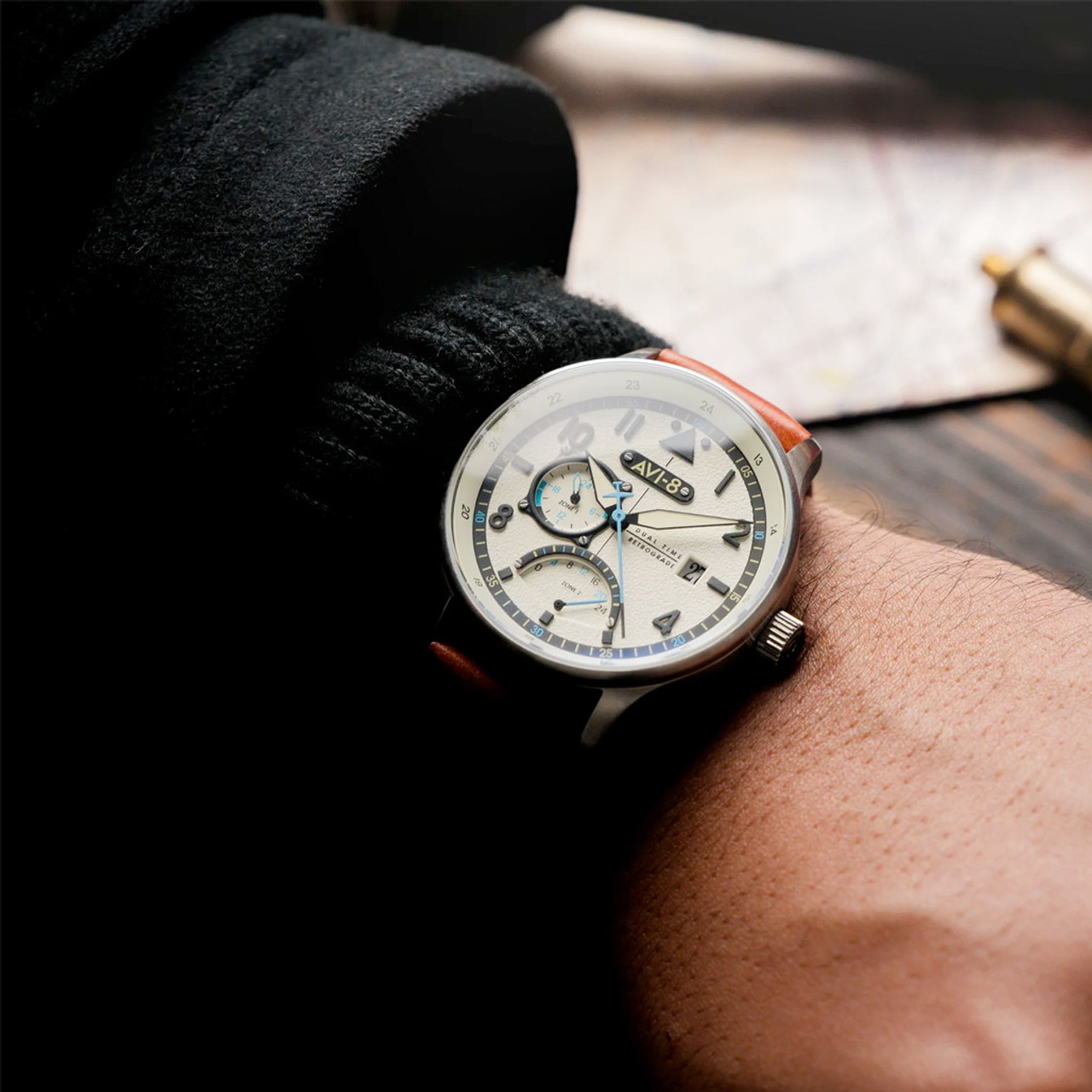 Legendary Squadron Leader Archie McKellar of the 605 Squadron famously achieved the extraordinary feat of “Ace in a Day” when he shot down 5 enemy aircraft in a single day whilst flying his Hawker Hurricane during the Battle of Britain. Inspired by his incredible achievements and bravery, AVI-8 is proud to launch the Hawker Hurricane McKellar Multifunction Limited Edition, with unique design details drawn from his illustrious Hawker Hurricane.