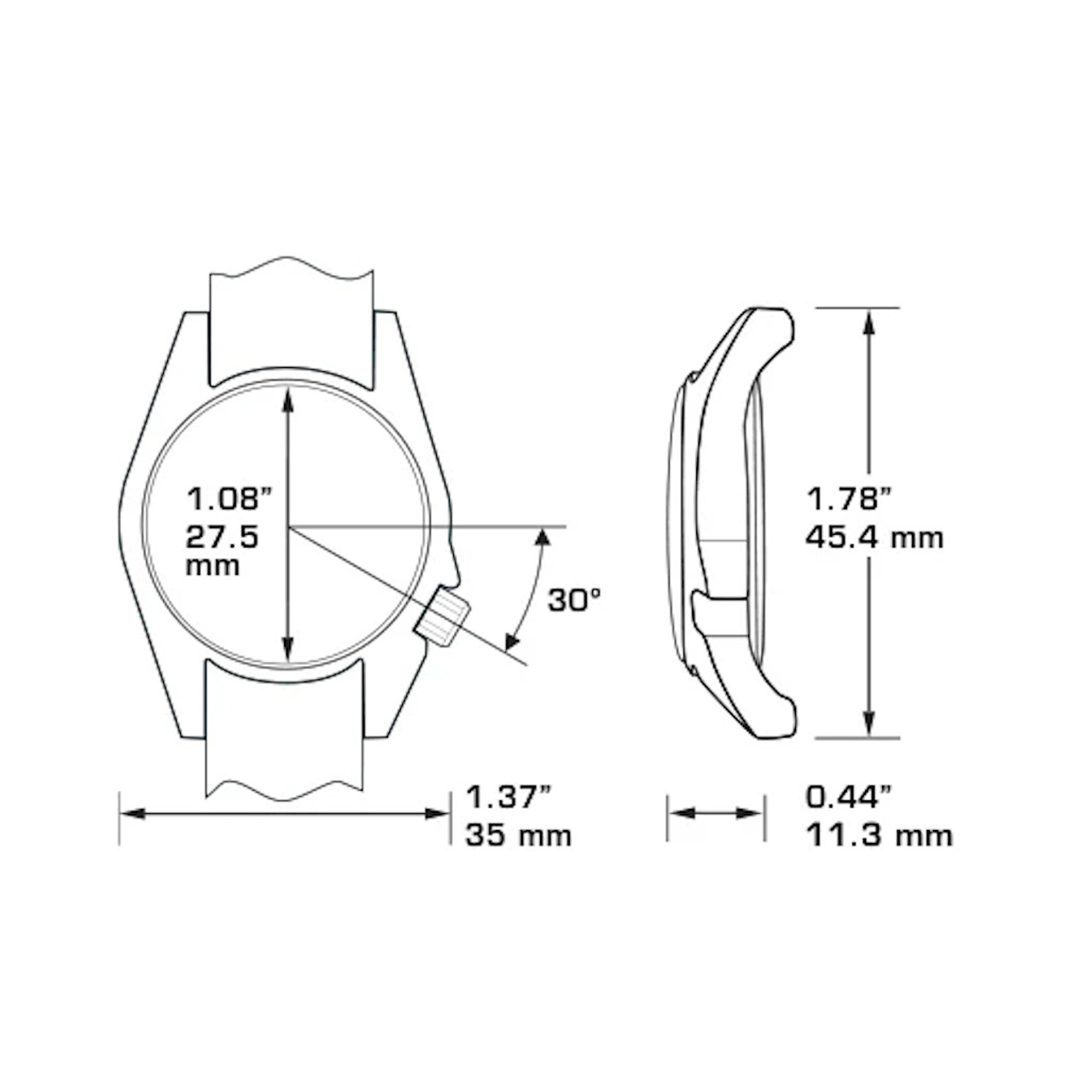 Case: Fiber reinforced polycarbonate, 35 x 11.3mm, 45.4mm lug to lug