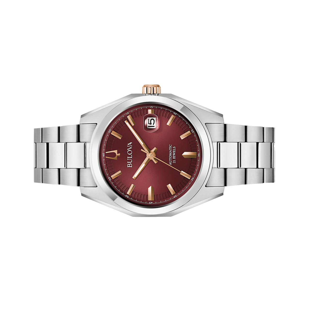 Bulova Surveyor Automatic Watch with Sunburst Maroon Dial #98B422