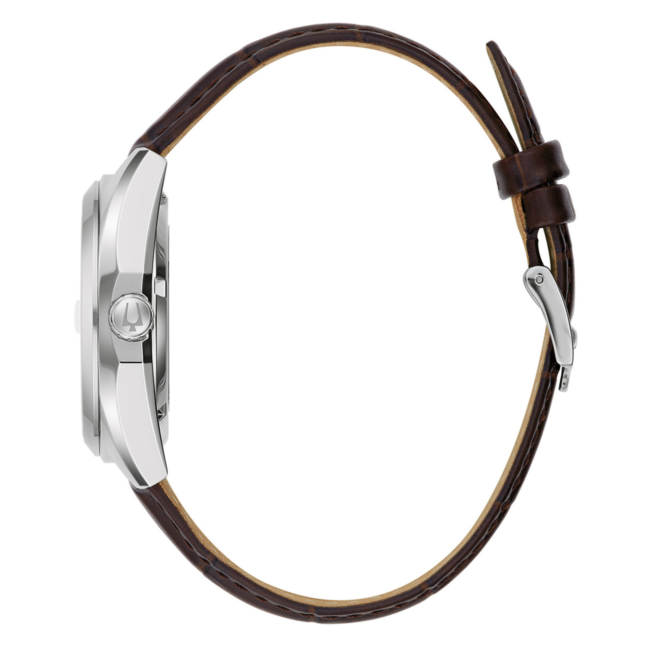 The Bulova men’s Surveyor is defined by exceptional quality and sophisticated aesthetics. The silver-tone stainless steel case features sculpted edges and faceting which provide an effortless wear on the wrist, with polished and brushed finishing, a flat sapphire crystal, and a quick-release brown leather strap. The striking pistachio radiant sunburst finish and features silver-tone accents, hands with luminescent fill, debossed minute markers, and a magnified date display. The watch is powered by an 21-jewels and a 42-hour power reserve, which can be seen in full through a mineral crystal exhibition window in the caseback. For those with a discerning eye for refined luxury, this Bulova men’s timepiece is the obvious choice.