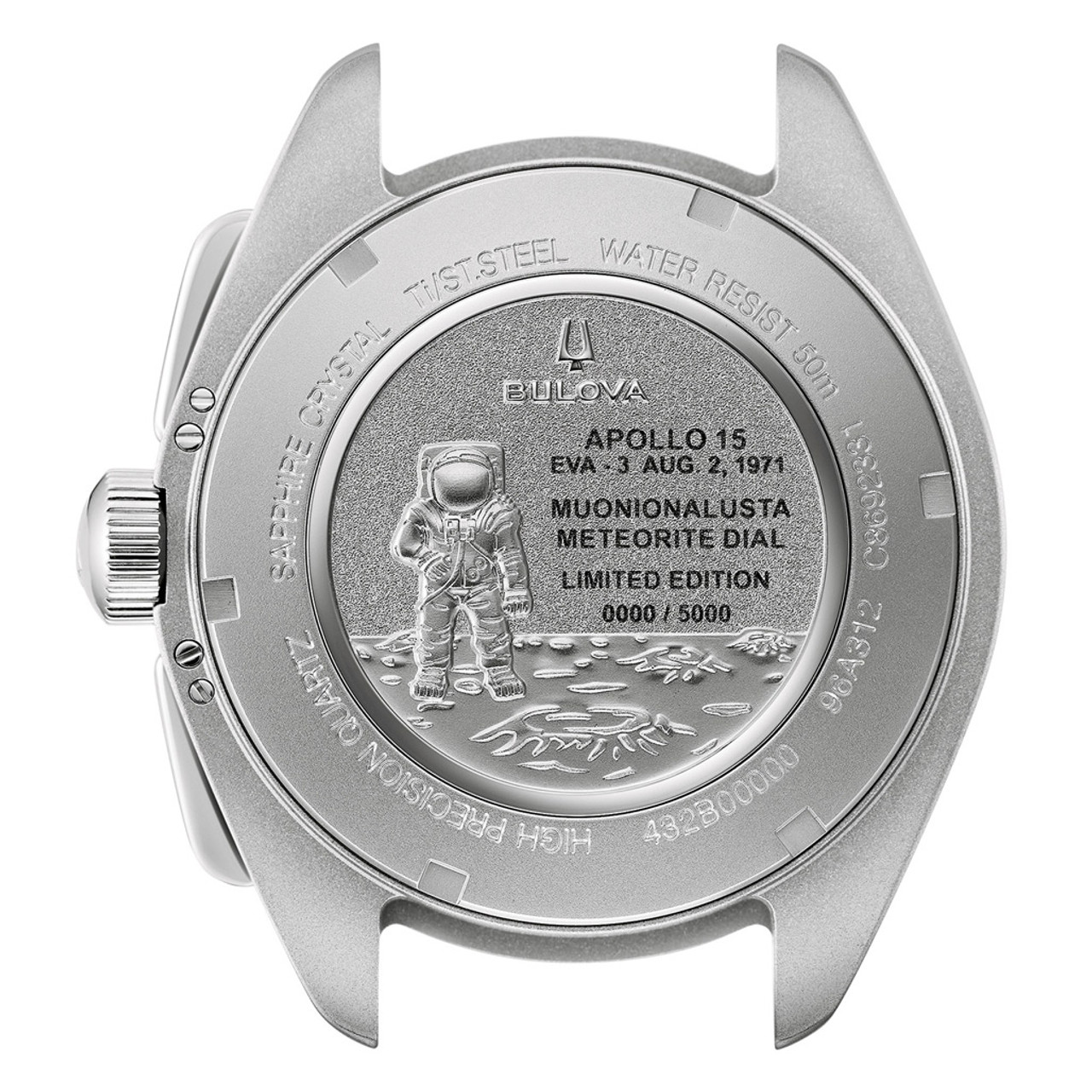 "On August 2, 1971, a Bulova chronograph engineered for lunar conditions was worn on the moon during the Apollo 15 mission. History is made again with the Limited Edition Lunar Pilot Meteorite from the Archive Series, this time with a unique dial that reinforces its spacefaring history – meaning, no two dials are alike.