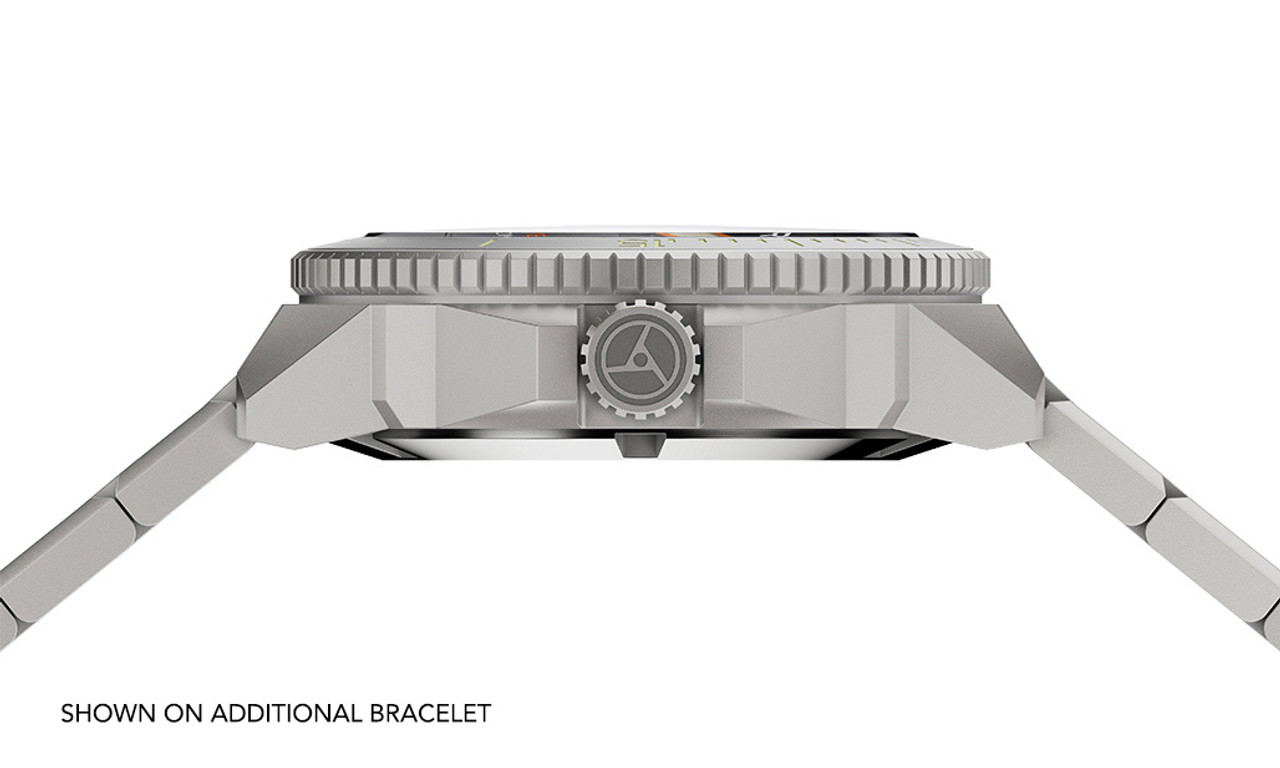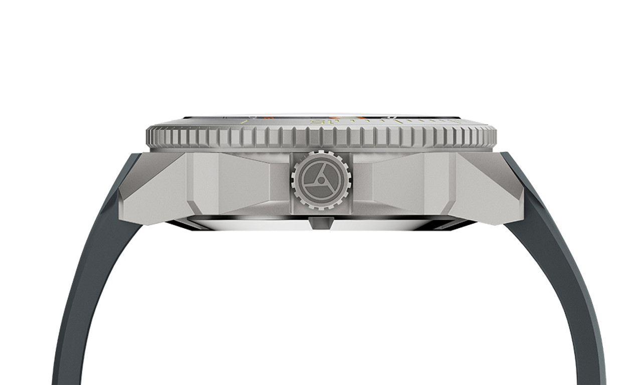 • Integrated rubber strap with quick-change system and scratch-resistant titanium clasp