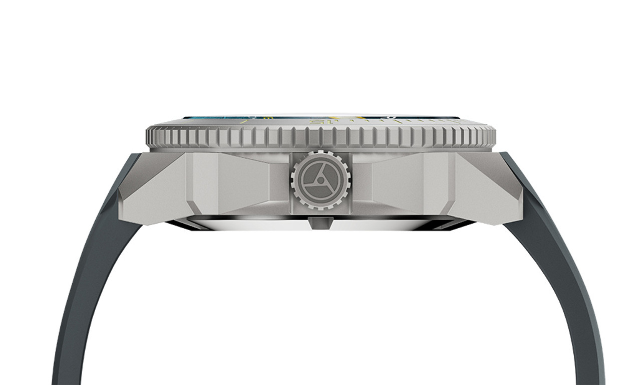 - Titanium grade 2 housing, scratch-resistant up to 1,200 Vickers thanks to surface coating