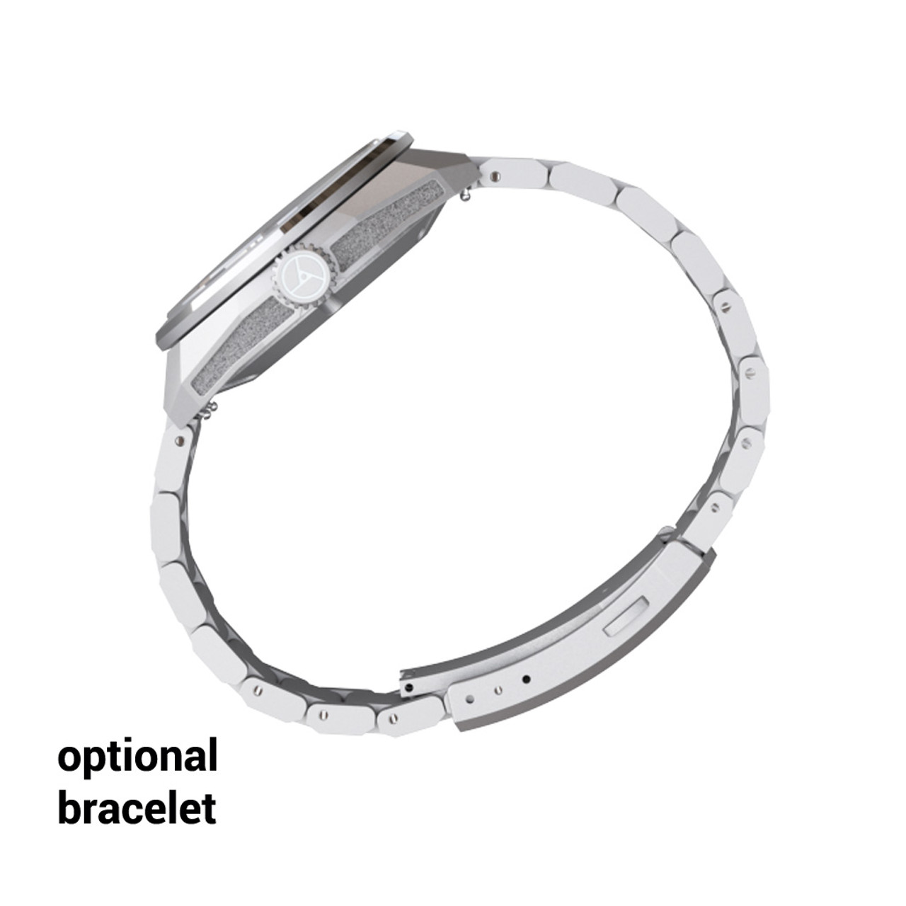 Optional solid, scratch-resistant steel strap with quick-change system, screwed links (including screwdriver) and safety clasp with fine adjustment in 3 positions