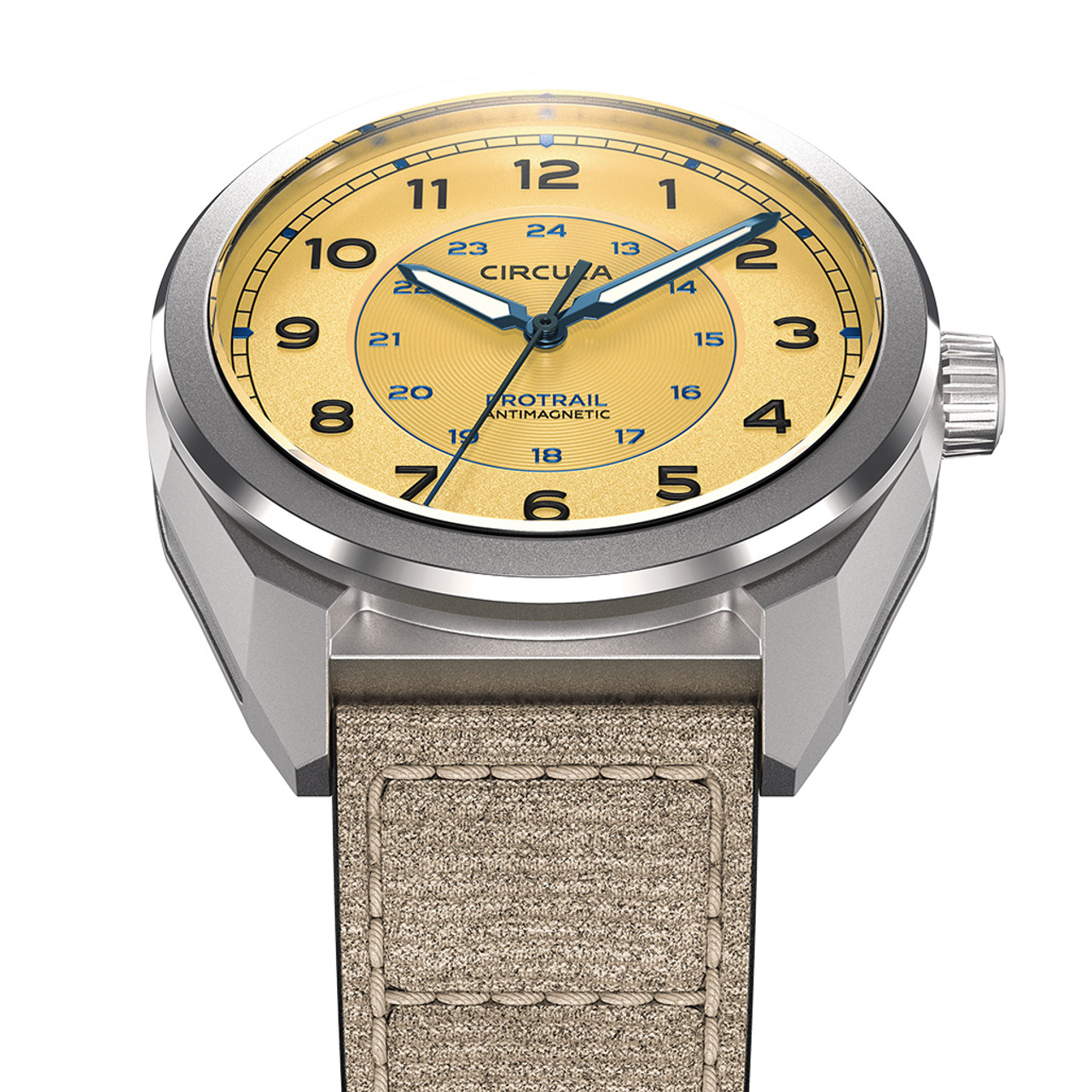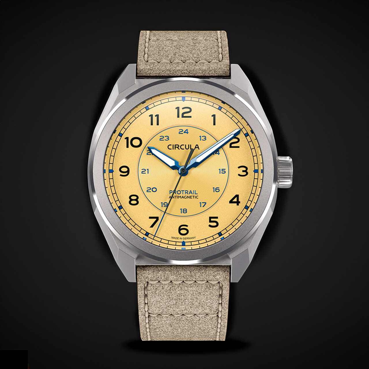 The ProTrail is a real field watch, robust, functional, with high-quality features and workmanship. The carefully hand-sandblasted stainless steel case is antimagnetic up to 80,000 A/m and protects the precise Swiss movement inside. Sapphire crystal and a special surface treatment of the case ensure maximum scratch resistance. It was developed together with over 6,500 votes from the global watch community.