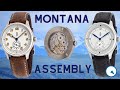 From the hands of an experienced craftsman comes the DB Model 1A. Immediately at first glance, you can tell it is a product of quality. The German case, from Ickler, was made specifically for the Model 1. The crisp white dial is enamel painted, a painstaking process that yields a mirror polished white finish. The dial evokes the vintage railroad timepieces of yesteryear and is also sourced from Germany. The arabic numbers are filled with Superluminova that gives an aged appearance, but glows bright green in low light. A railroad style chapter ring aids in reading the minutes. At the 6:00 position is an offset seconds hand. Below this is "Bozeman, MT", where DB watches are assembled and regulated in Dave's own workshop.